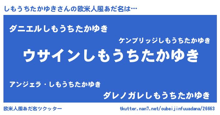 | 男性向けラノベタイトル風あだ名 | 『しもうちたかゆきの嫁は女の子じゃないと思った?』 |