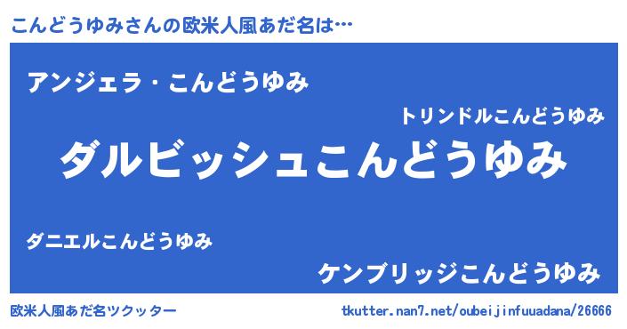 | 女子向けラノベタイトル風あだ名 | 『異世界で失敗しない100のこんどうゆみ』 |