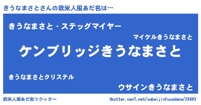 | 男性向けラノベタイトル風あだ名 | 『Re:きうなまさとから始める異世界生活』 |