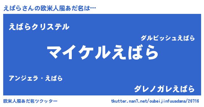 | 男性向けラノベタイトル風あだ名 | 『えばらの憂鬱』『魔弾の王とえばら』 |