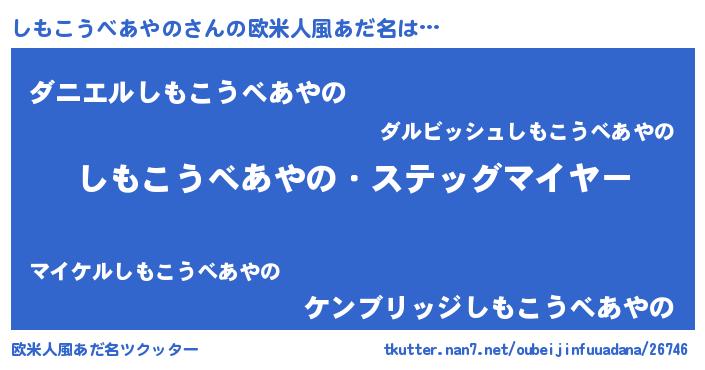 | 女子向けラノベタイトル風あだ名 | 『シンデレラしもこうべあやの家の靴箱館』 |