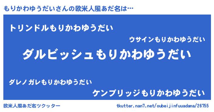 | 男性向けラノベタイトル風あだ名 | 『誰もが恐れるあのもりかわゆうだいが、ぼくの専属メイドになるようです。』 |
