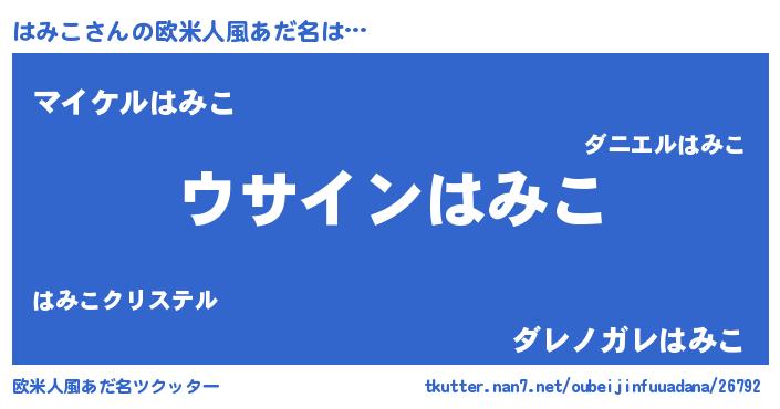 | 男性向けラノベタイトル風あだ名 | 『はみこの嫁は女の子じゃないと思った?』 |