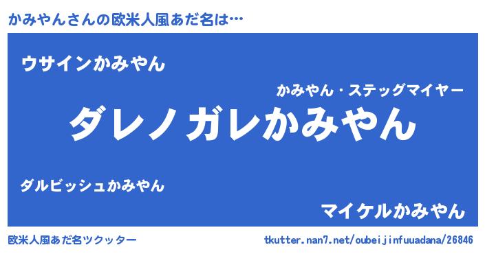 | 男性向けラノベタイトル風あだ名 | 『魔弾の王とかみやん』 |