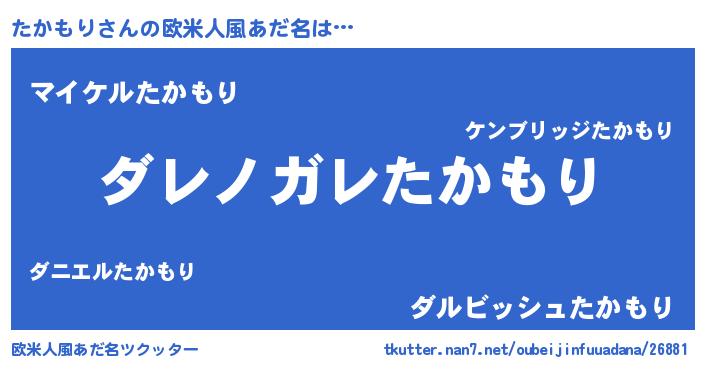 | ヒーロー風カッコイイあだ名 | 『仮面タカダー』『スーパータカモリ』 |