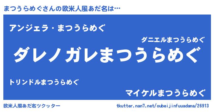 | 女子向けラノベタイトル風あだ名 | 『乙女ゲームの破滅フラグしかない悪役まつうらめぐに転生してしまった…』 |