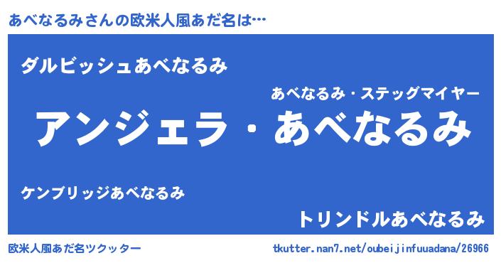 | ヘコむあだ名 | 『あべなるみ(遠い目)』『あべっ子』 |
