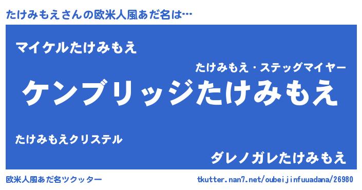 | ヒーロー風カッコイイあだ名 | 『超時空戦士タケミモエ』『仮面タケダー』 |