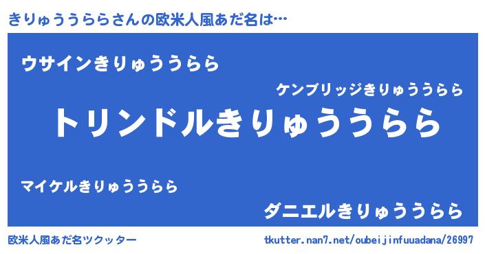 | 男性向けラノベタイトル風あだ名 | 『キリュウウララスレイヤー』 |
