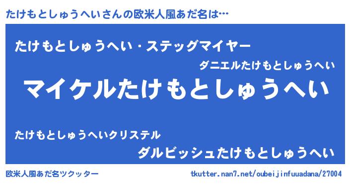 | 男性向けラノベタイトル風あだ名 | 『タケモトシュウヘイアートオンライン』 |