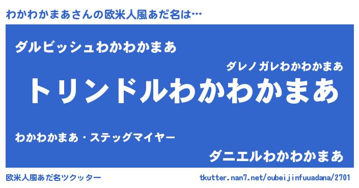 | ヒーロー風カッコイイあだ名 | 『ネオワカワカマア』『仮面ワカダー』 |