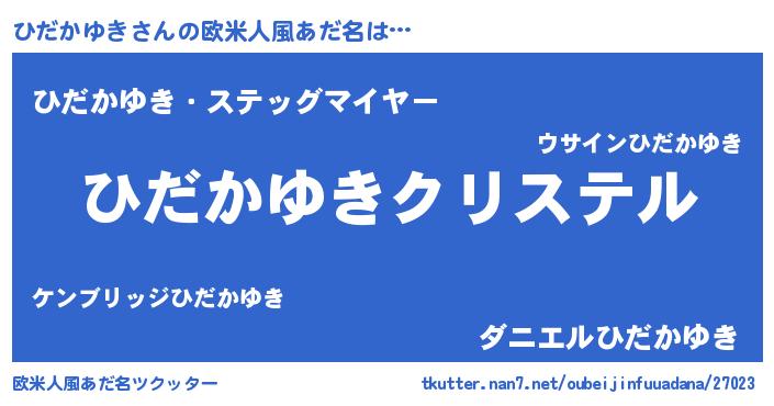 | 女子向けラノベタイトル風あだ名 | 『ひだかゆき伯爵の花嫁』 |