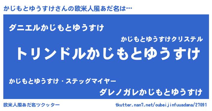 | 男性向けラノベタイトル風あだ名 | 『かじもとゆうすけ~年齢イコール彼女いない歴の魔法使い~』 |