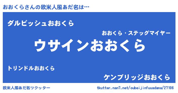 | 女子向けラノベタイトル風あだ名 | 『おおくらは平凡を望む』 |