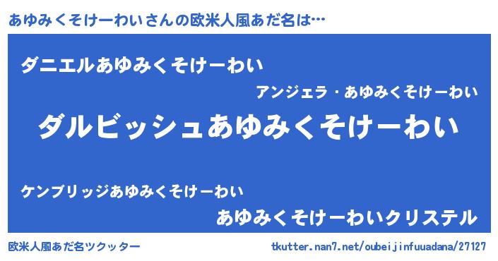 | 女子向けラノベタイトル風あだ名 | 『異世界で失敗しない100のあゆみくそけーわい』 |