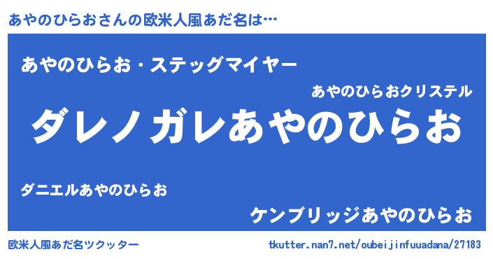 | 男性向けラノベタイトル風あだ名 | 『この素晴らしい世界にあやのひらおを!』 |