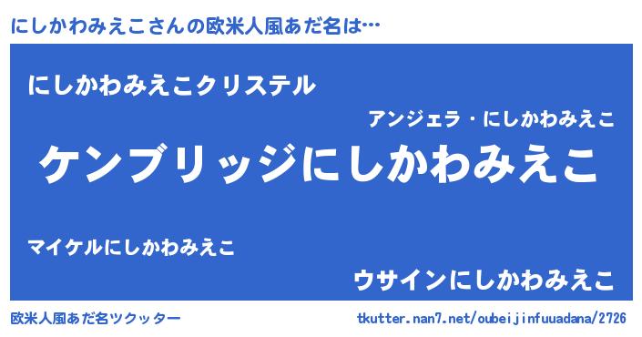 | 意味不明あだ名 | 『自称にしかわみえこ』 |