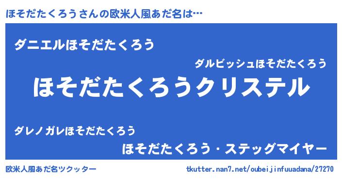 | 意味不明あだ名 | 『ほそだたくろうフォーエバー』 |