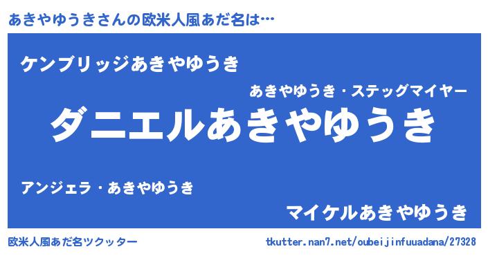 | 男性向けラノベタイトル風あだ名 | 『ノーゲーム・ノーアキヤユウキ』 |