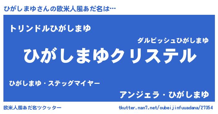 | 男性向けラノベタイトル風あだ名 | 『やはりひがしまゆの青春ラブコメはまちがっている 』 |