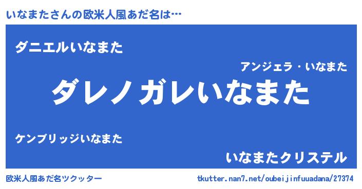| 男性向けラノベタイトル風あだ名 | 『魔弾の王といなまた』 |