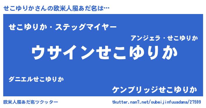 | 男性向けラノベタイトル風あだ名 | 『せこゆりかの嫁は女の子じゃないと思った?』 |