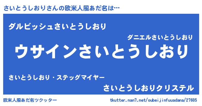 | ポケモン風あだ名 | 『ヒサイトウシオリ』『ゼニサイ』 |