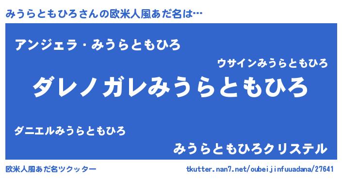 | 女子向けラノベタイトル風あだ名 | 『乙女ゲームの破滅フラグしかない悪役みうらともひろに転生してしまった…』 |