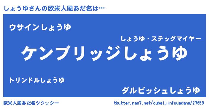 | 男性向けラノベタイトル風あだ名 | 『Re:しょうゆから始める異世界生活』 |