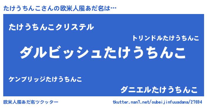| 男性向けラノベタイトル風あだ名 | 『たけうちんこという概念が存在しない退屈な世界 』 |