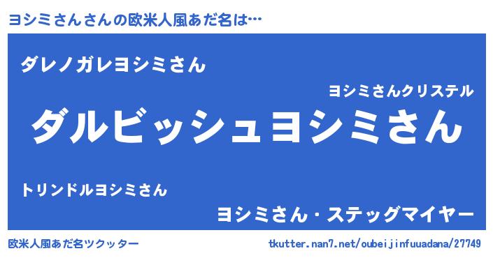 | 女子向けラノベタイトル風あだ名 | 『異世界で失敗しない100のヨシミさん』 |