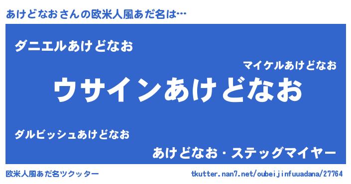 | 男性向けラノベタイトル風あだ名 | 『あけどなおの嫁は女の子じゃないと思った?』 |