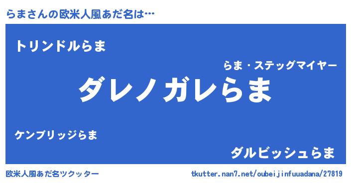| 男性向けラノベタイトル風あだ名 | 『この素晴らしい世界にらまを!』 |