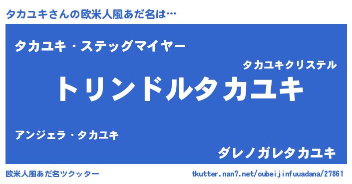 | 女子向けラノベタイトル風あだ名 | 『タカユキの玉の輿計画!』 |