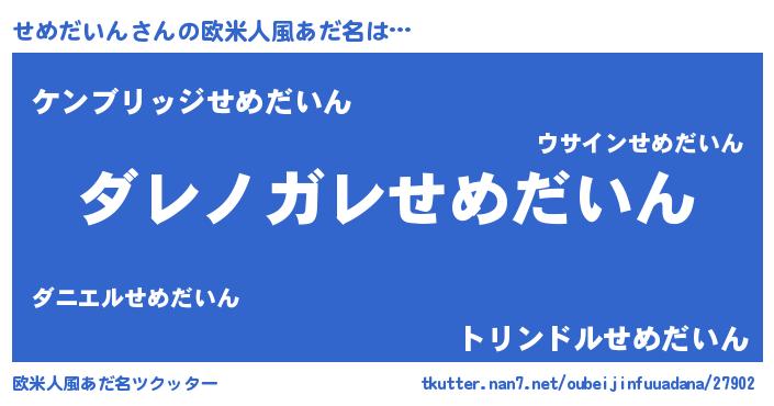 | 意味不明あだ名 | 『住所不定無職せめだいん(5歳)』 |