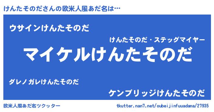 | 男性向けラノベタイトル風あだ名 | 『ケンタソノダアートオンライン』 |