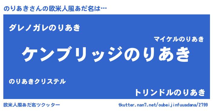 | 女子向けラノベタイトル風あだ名 | 『闇ののりあき』『のりあきの雑貨屋さん』 |