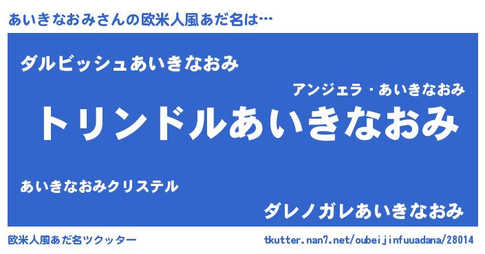 | 男性向けラノベタイトル風あだ名 | 『転生したらあいきなおみだった件』 |
