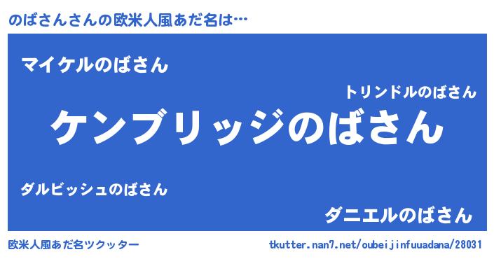 | 女子向けラノベタイトル風あだ名 | 『のばさんなんてお断りですっ。』 |