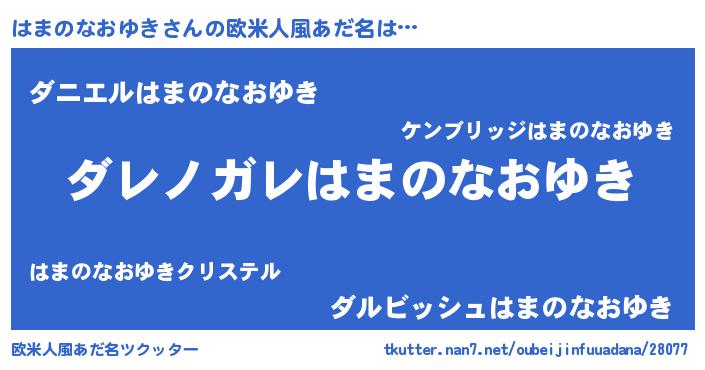 | 男性向けラノベタイトル風あだ名 | 『この素晴らしい世界にはまのなおゆきを!』 |