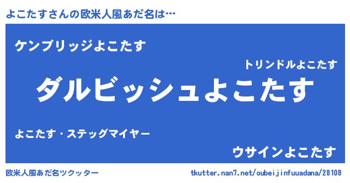 | 男性向けラノベタイトル風あだ名 | 『よこたすという概念が存在しない退屈な世界 』 |