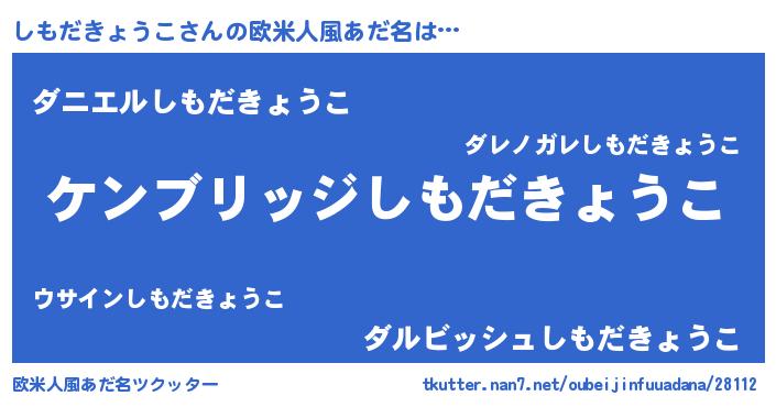 | 女子向けラノベタイトル風あだ名 | 『しもだきょうこストレイドッグス』 |