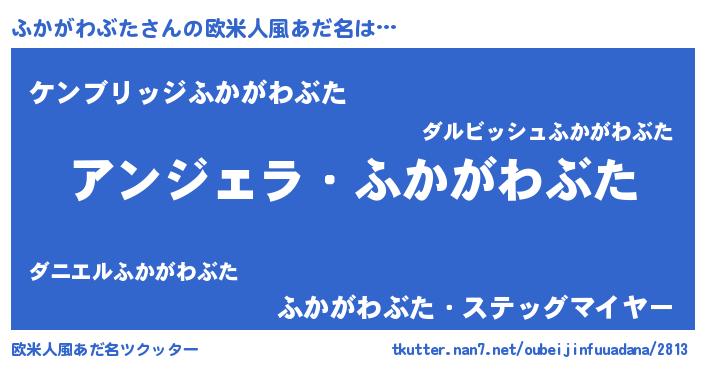 | 意味不明あだ名 | 『自称ふかがわぶた』 |