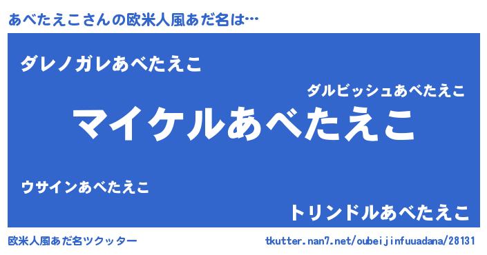 | 胡散臭い通販商品みたいなあだ名 | 『必ず成功する霊験あらたかなお札…その名も「あべたえこ」』 |