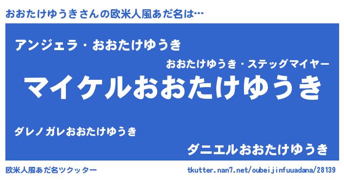 | 男性向けラノベタイトル風あだ名 | 『オオタケユウキアートオンライン』 |