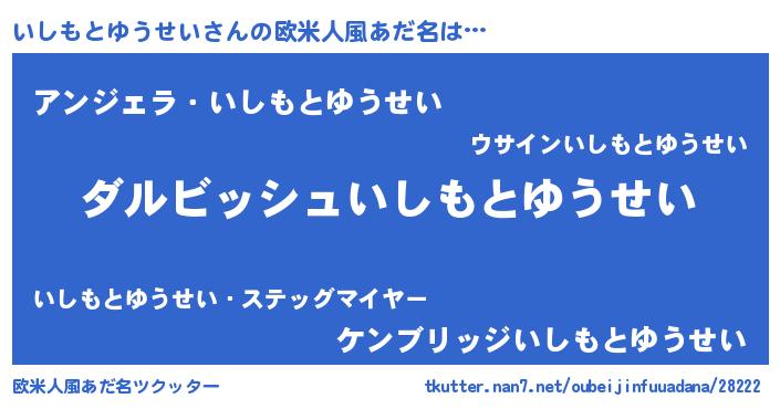 | ヘコむあだ名 | 『いしもとゆうせい(笑)』『いしお』 |