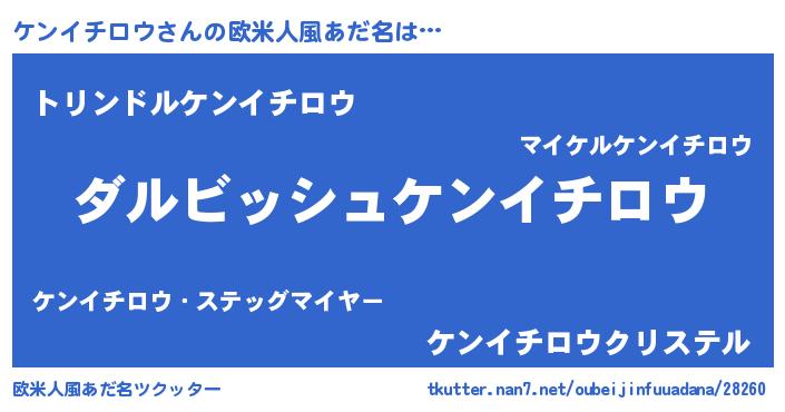 | ヒーロー風カッコイイあだ名 | 『ネオケンイチロウ』『黄金騎士ケン』 |