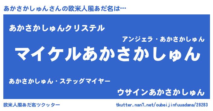 | 男性向けラノベタイトル風あだ名 | 『アカサカシュンアートオンライン』 |