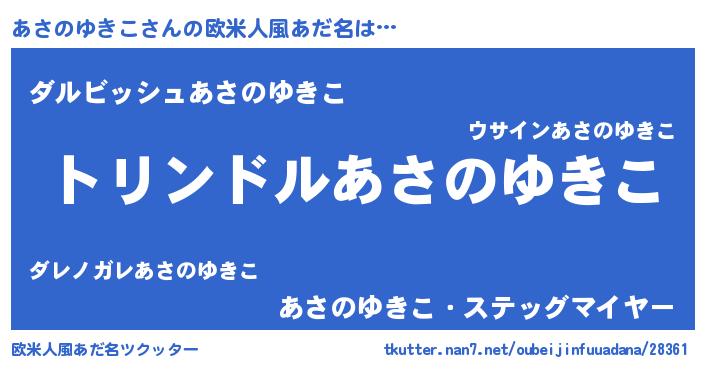 | 男性向けラノベタイトル風あだ名 | 『転生したらあさのゆきこだった件』 |