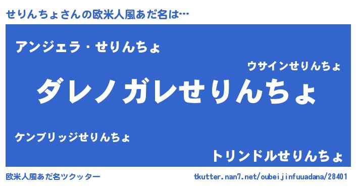 | 男性向けラノベタイトル風あだ名 | 『この素晴らしい世界にせりんちょを!』 |
